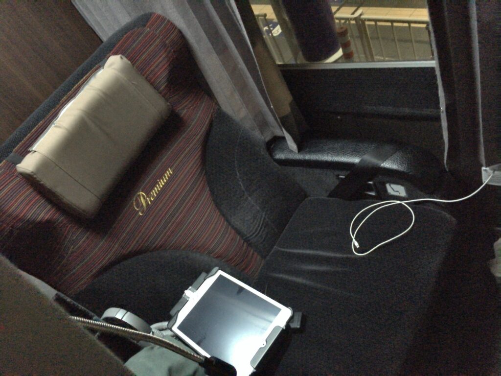 まず感じたのは、座席まわりの余裕です。独立シートで、プライベートカーテンのおかげで、周囲をあまり気にせずに過ごせました。
