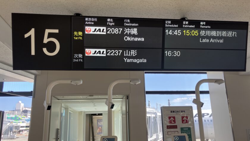 3月30日の沖縄への帰りは、日本航空 JL2087便・大阪伊丹 14:50 – 沖縄那覇 17:00 に搭乗します。